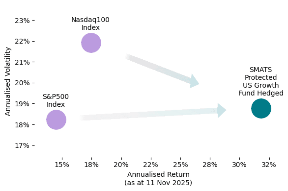 The Fund will invest in listed US equities on S&P 500 and Nasdaq 100 indices. Our low turnover approach to investment is facilitated by protecting against downside market moves with the use of volatility, currency and government bond securities. It will not be trading short positions in shares. A strict and consistent proprietary investment process will be applied by SMATS Asset Management Pty Ltd in both selecting securities and selecting the weights for those securities.